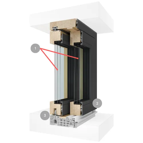 This sliding door made of wood and aluminum can be adjusted and optimized. Configure your wood-aluminum sliding door according to your wishes.